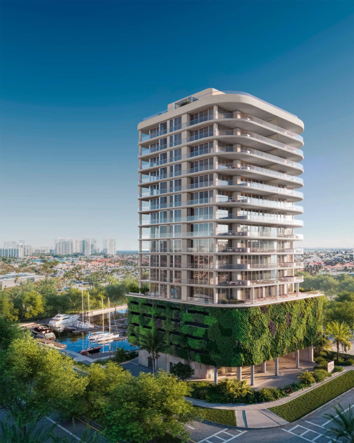 Rooftop pool with private cabanas and dining. State-of-the-art fitness center, spa, and salon. Social spaces, including a games lounge and wine bar. Private marina with 14 boat slips.