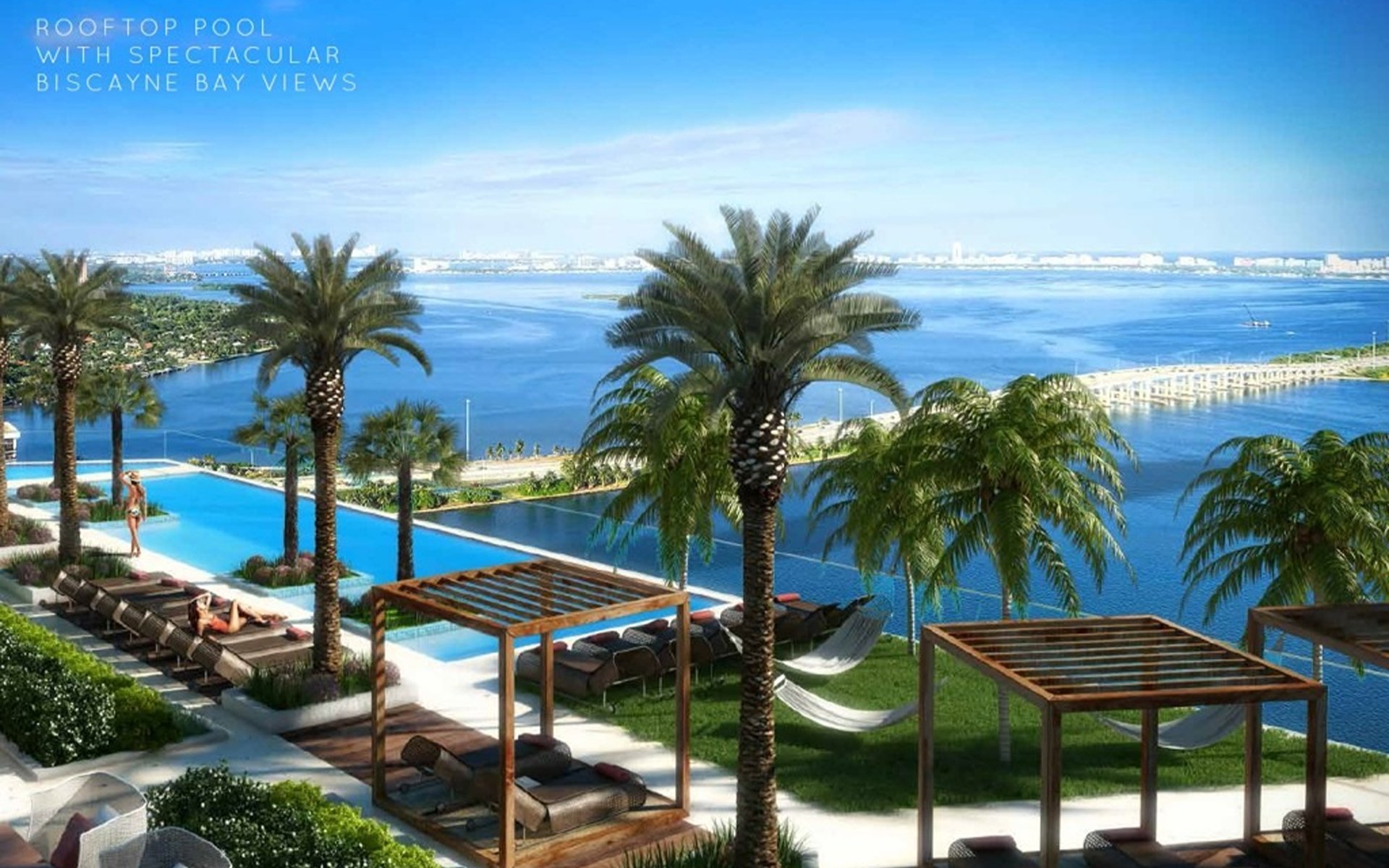 - Floor-to-ceiling windows with panoramic views of Biscayne Bay and Miami Beach.