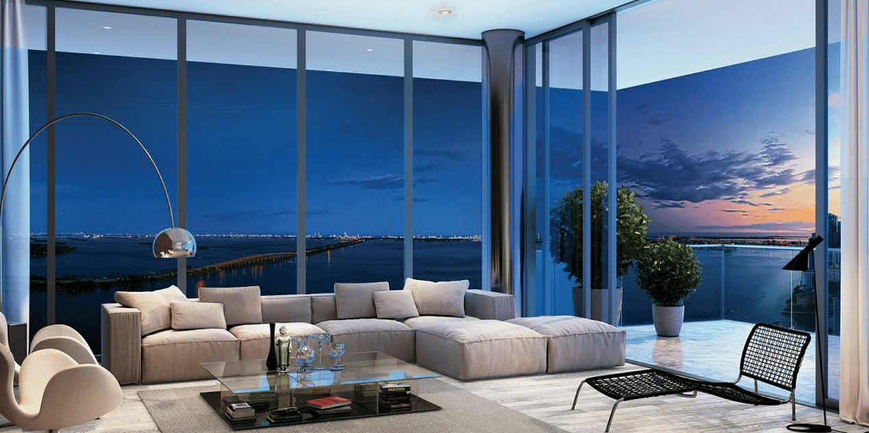 - Floor-to-ceiling windows with panoramic views of Biscayne Bay and Miami Beach from all residences