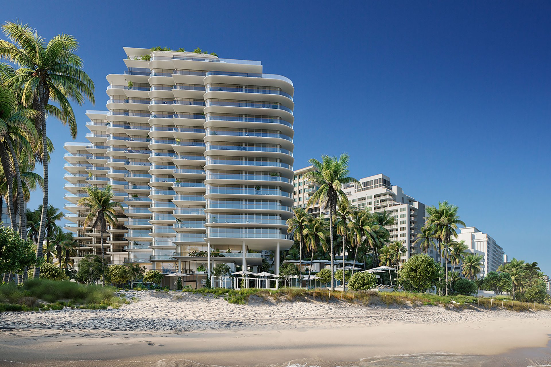 - Private 10- to 12-foot-deep terraces designed to provide direct views of the Atlantic from every residence